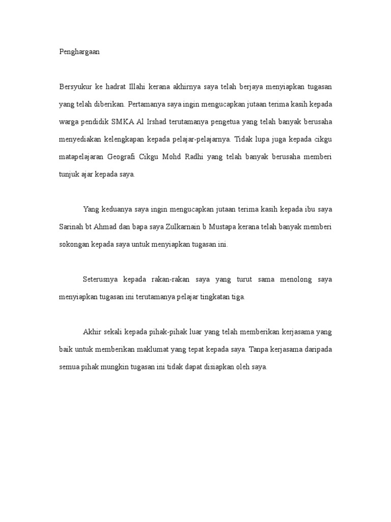 Contoh Penghargaan Folio Geografi Tingkatan 1